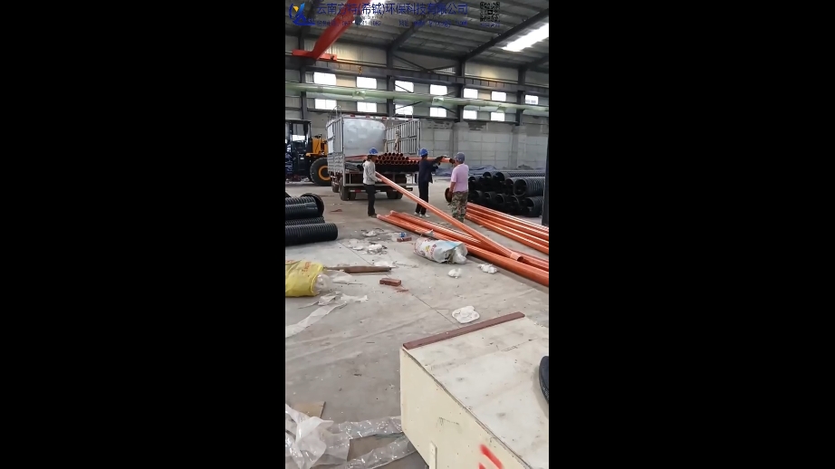 排水管生產線8條,生產品種有HDPE雙壁波紋管、鋼帶增強聚乙烯(PE)螺旋波紋管、HDPE中空壁纏繞管;